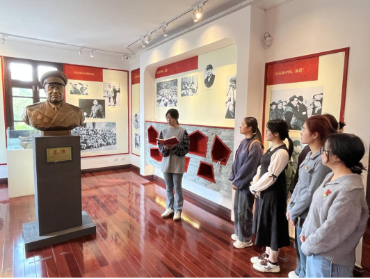 随后,同学们前往晋宁区党史陈列馆“八角楼”,重温晋宁革命历程,缅怀革命先烈。“八角楼”始建于1940年,因屋顶呈八个角而得名。在“八角楼”内,“远志”党史学习实践团的王依娜同学向大家声情并茂地讲述了1962年朱德委员长到晋宁视察在八角楼小憩时的情形,朱德委员长的那句“好啊!你们敢对人民负责,我很高兴!”深深地打动了在场的每位同学。