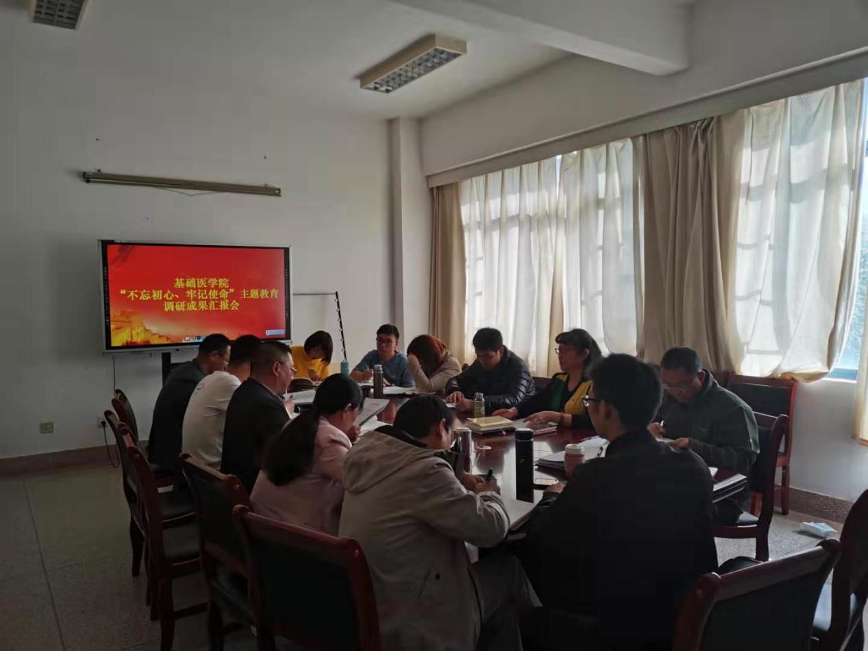 2019年11月12日,根据我校“不忘初心、牢记使命”主题教育工作安排,基础医学院党委举行主题教育调研成果汇报会,学院党委领导班子成员做调研汇报交流, 校党委主题教育领导小组第五指导小组组长李正良莅临指导,学院各党支部书记参会。