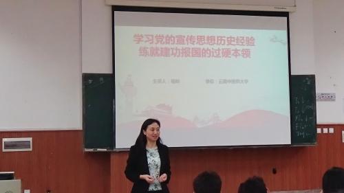 党委宣传部部长杨盼受邀做了《学习党的宣传思想历史经验,练就建功报国的过硬本领》专题培训,她讲述了党的宣传思想工作在百年党史中的发展历程,以及青年学子应如何不断提升媒体素养,如何高举旗帜,以新的精神状态完成新的使命,朝着实现“两个一百年”奋斗目标开启现代化建设新征程等内容。她号召同学们要从党史学习中激发信仰、获得启发、汲取力量,肩负时代重任,把握时代潮流,树立为祖国为人民永久奋斗、赤诚奉献的坚定理想,在民族复兴的征程上成就一番事业。