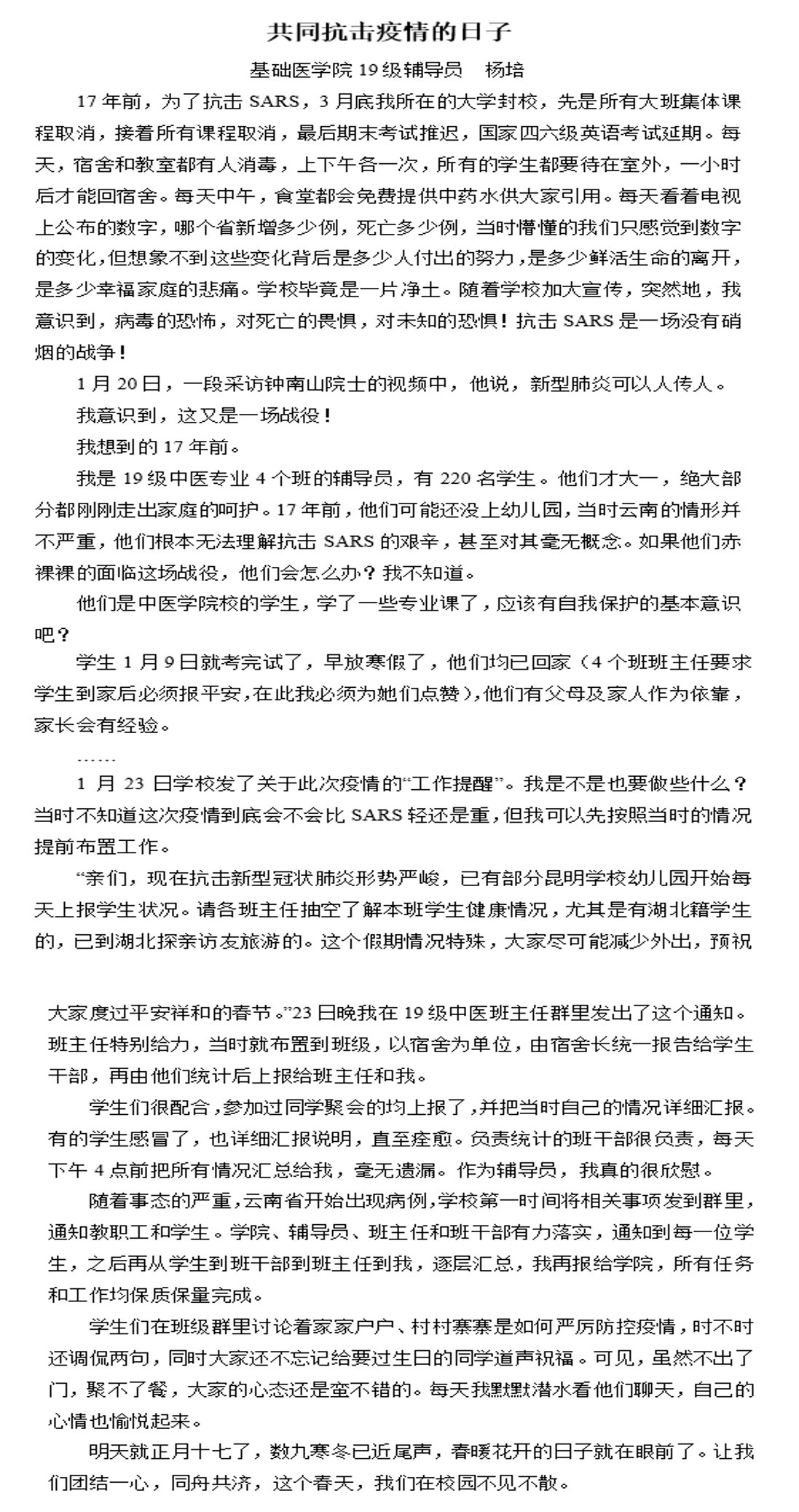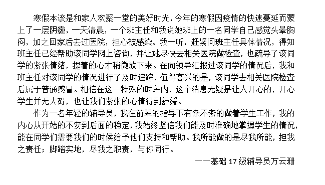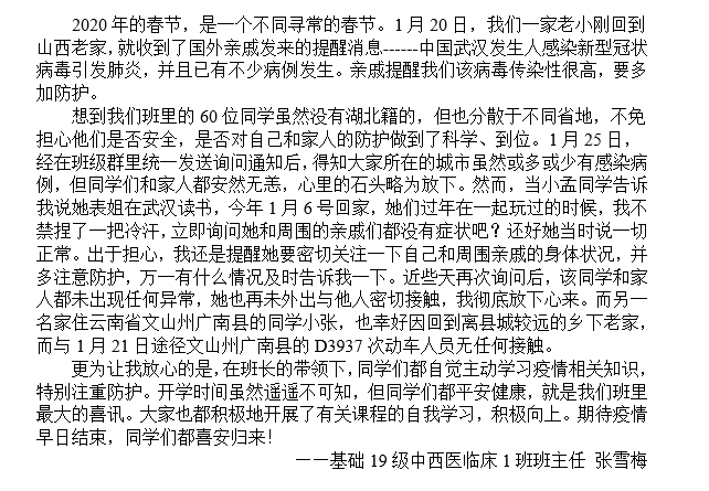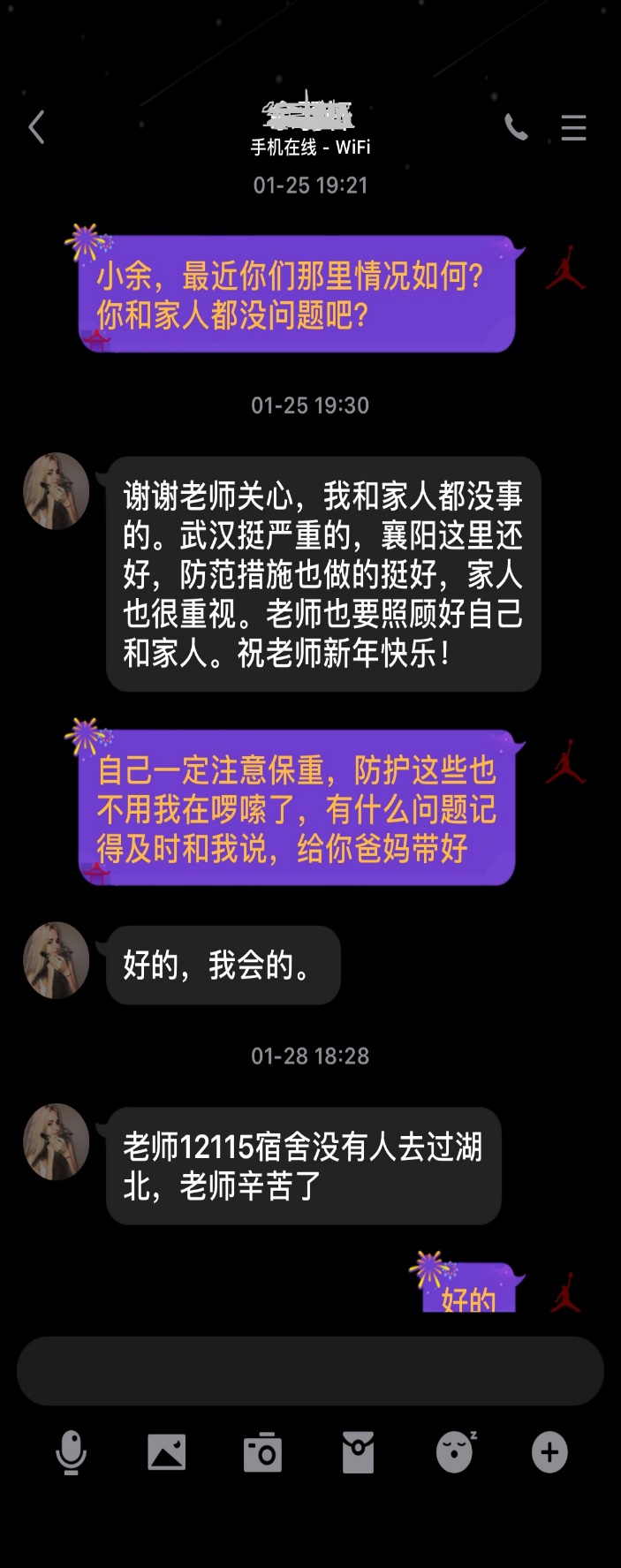 身处后方的辅导员、班主任们也为战“疫”做着自己的分内之事