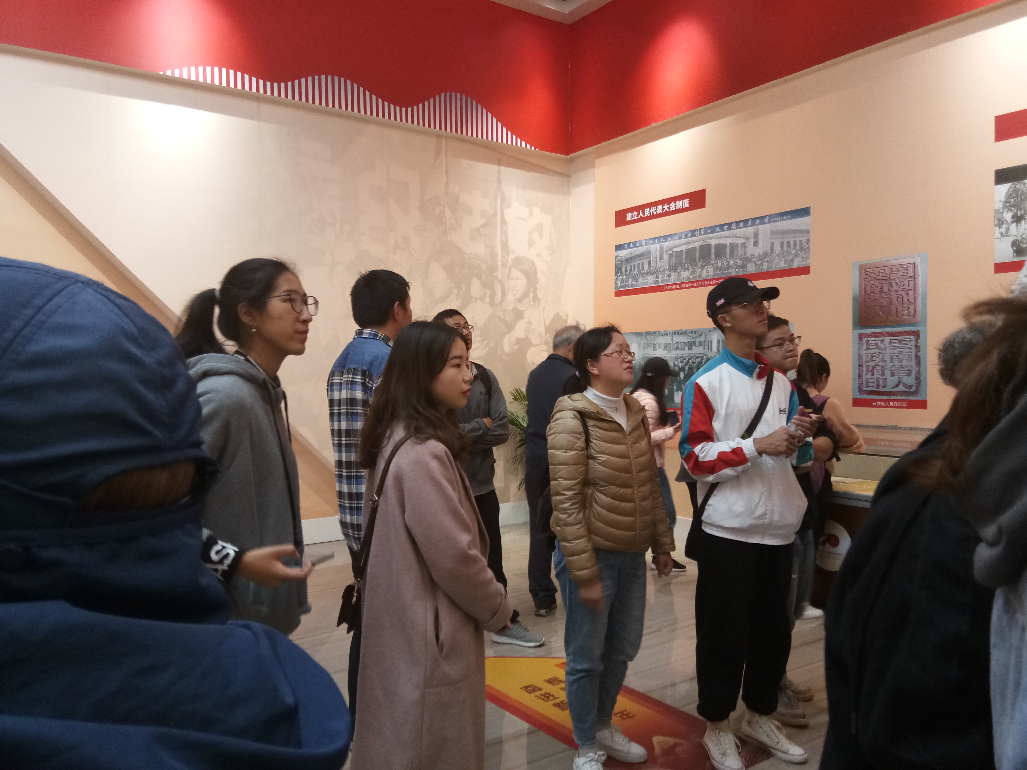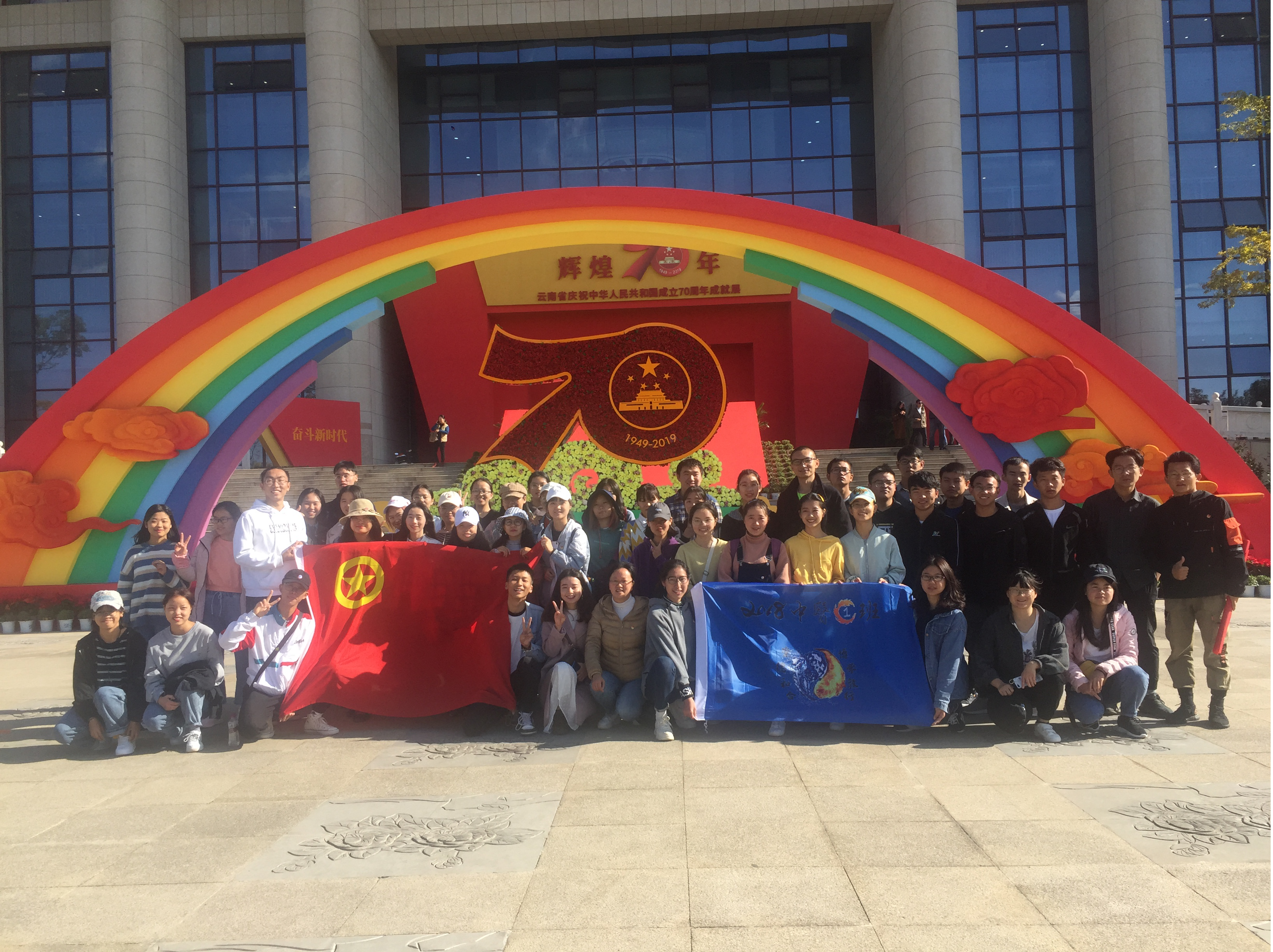 云中迅(通讯员 朱晓安)为庆祝中华人民共和国成立70周年,2019年11月15日云南中医药大学基础医学院2018级中医一班学生在班主任姜小琼老师、辅导员王祖贤老师的带领下,一同前往云南文学艺术馆参观了“云南省庆祝中华人民共和国成立70周年成就展”,深刻感受国家和云南省70年来取得的辉煌成就,增强大学生爱国爱党爱社会主义的深厚情感。