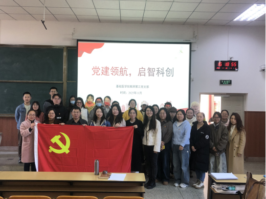 (通讯员 蒋成婷) 11月28日下午,一场以“党建领航,启智科创”为主题的联合共建活动在弘毅楼1308教室顺利开展。本次活动由基础医学院教师第三党支部牵头,联合学生第四党支部及生理学教研室共同举办,旨在通过党建引领,凝聚师生合力,激发科研创新热情,搭建交流成长平台。