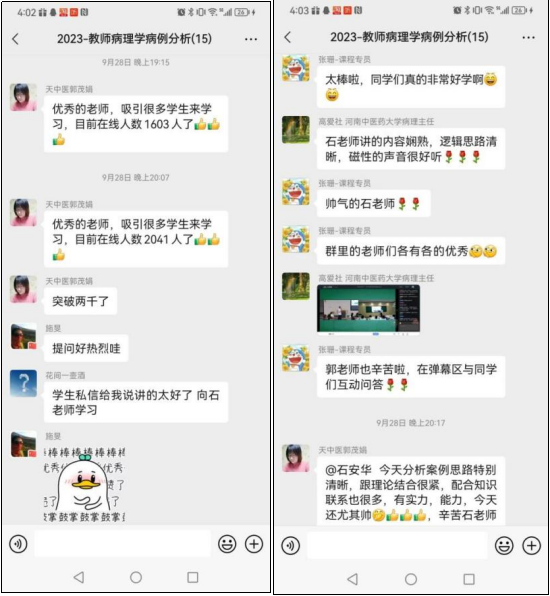 为提高我院病理学课程教学质量,增强学生对医学知识的运用分析能力,2023年9月28日晚上6:30--8:30,基础医学院病理学教研室与天津中医药大学、南京中医药大学、河南中医药大学等3所大学的病理教研室,联合开展了线上教学活动。本次活动通过智慧树平台进行,由天津中医药大学病理学教研室李虎虎副教授主持,来自4所大学的2000余名师生参加了本次教学活动。