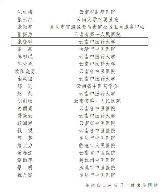 我院张晓琳教授获评云南省名中医。