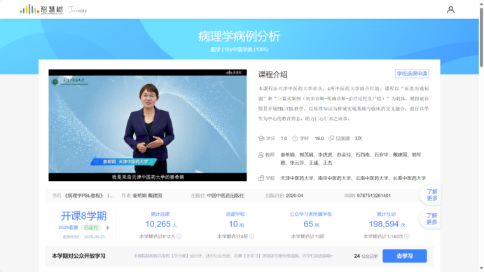 20253月至5月,由天津中医药大学领衔,联合云南中医药大学成都中医药大学及南京中医药大学共同建设的《病理学病例分析》课程在智慧树平台圆满完成教学任务。我校2023级中西医临床医学、中医儿科学、中医骨伤科学及傣医学4专业160同学与全国10余所院校的10263名学子同堂学习,共探病理学的奥秘