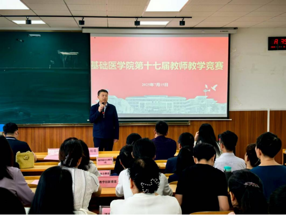 2025年7月15日,基础医学院在呈贡校区举办了第十七届教师教学竞赛。学校党委委员、副校长陈祖琨,教务处处长石安华,基础医学院全体党政领导以及全体教师参加开幕式。本次比赛特别邀请了来自云南省各大高校的20位教学名师担任专家评委。