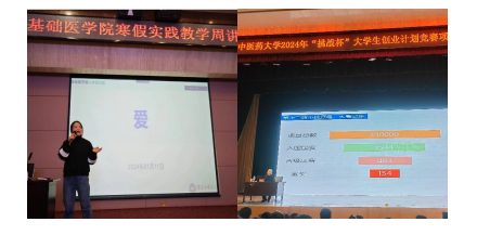 小学期期间,还举办了以《爱》为题心理讲座,《2024年“挑战杯”大学生创业计划竞赛项目申报培训会》等多场讲座,涉及到医学人文素养、大学生创新创业等相关领域的知识,提升了同学们的综合素养,促进了专业发展。