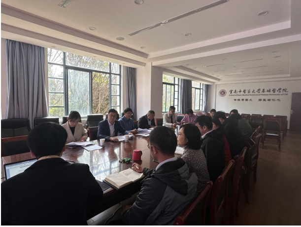 调研会上,孙雪萍汇报了《基础医学院学科建设规划(2024—2025年)》征求意见稿的情况,学院近期申报学校“培土生金”培育学科和申报云南省哲学社会科学创新团队工作进展情况,羊忠山副院长汇报了学院引进柔性人才工作情况。