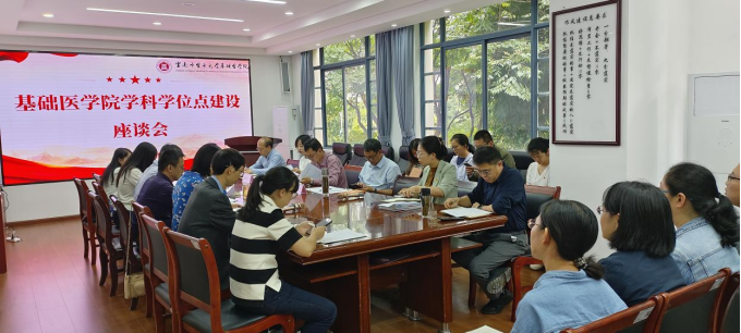 办公室、基础医学院领导班子成员、学位点负责人、各党支部书记、职能科室负责人、各教研室主任、实验室主任参加调研座谈