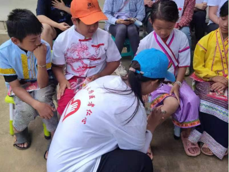 7月17日实践团来到章朗村,与当地的布朗族小朋友开展了一场别开生面的“大手牵小手,中医伴成长”中医药文化进校园活动。活动现场,实践团队员们通过生动有趣的讲解和丰富多彩的互动形式,向小朋友介绍了中医药基本知识、常用腧穴取穴方法、常见的中草药识别方法,活动过程中,还设置了互动环节,让小朋友们体验了艾灸足三里的中医疗法,小朋友积极参与,表现出对中医药文化的浓厚兴趣,充满了文化自信和民族自豪感。
