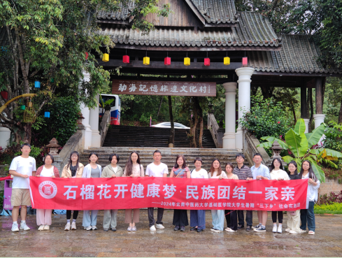 7月15日至19日,基础医学院“石榴花开健康梦•民族团结一家亲”大学生暑期“三下乡”社会实践团赴西双版纳傣族自治州勐海县开展社会实践活动。实践团由基础医学院党委书记孙雪萍带队,团委书记李姝洁、辅导员杞鹏翔、教师王雪梅和罗光云以及13名同学组成。