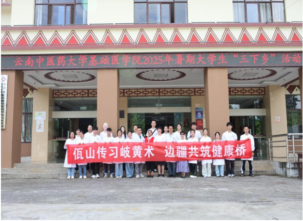 结语:此次大学生暑期“三下乡”社会实践活动,是基础医学院将思政教育、专业实践、服务社会、文化传承深度融合的生动典范。师生们以“岐黄薪火”照亮佤山健康与振兴之路,用“红心向党”铸牢中华民族共同体意识。活动不仅为佤族同胞提供了有温度、有厚度的健康守护,促进了中医佤医的交流融合,更让青年学子在边疆热土的躬身实践中,“行走的思政课”里,读懂了国情民情,厚植了家国情怀,淬炼了担当筋骨,深刻领悟了中国式现代化征程中边疆振兴的深层逻辑。学院将始终高举民族团结旗帜,持续深化中医药文化“边疆行”,推动佤医与中医融合创新,将边疆红色资源与发展案例转化为育人鲜活教材,奋力书写“岐黄为民、团结兴邦”的时代答卷,为服务国家战略、赋能边疆振兴贡献中医药的智慧与力量!