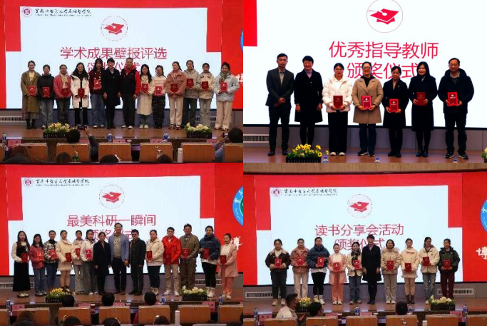 本次学术文化节活动中,研究生同学们积极参与,勇于创新,经过激烈的角逐,武颖丽、王银莹等48名研究生同学在读书分享会、学术成果壁报展、学术报告会、最美科研实验记录、“最美科研一瞬间”摄影作品等中获得了优异的成绩,卞瑶等18名研究生导师被评为“优秀指导教师”。这些奖项既是对师生们辛勤付出的肯定,也是对他们在学术研究和综合素质上取得成就的认可。