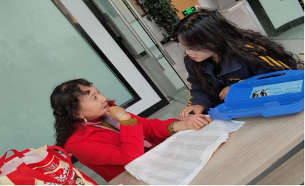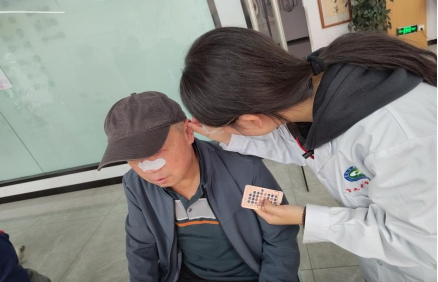 义诊现场,团队成员为社区居民进行健康咨询、营养问诊、测量血压,同时开展系列中医特色疗法,其中耳穴疗法深受居民喜爱。耳穴疗法是一种通过刺激耳朵上的特定穴位来调节身体的中医特色疗法,具有简便、安全、有效的特点,师生志愿者们根据居民的体质和健康状况,为居民选择适合的耳穴进行贴敷,并根据每个人的身体状况为居民科普相关中医养生保健方法,获得居民们的一致好评。