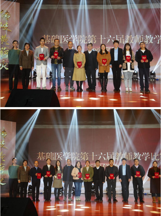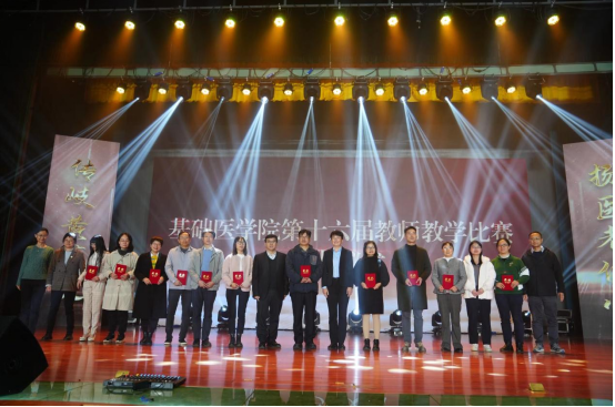 晚会中场,举行了基础医学院第十六届教师教学比赛颁奖仪式。基础医学院党政领导和第三附属医院教学部副主任邓虹老师为获奖教师逐一颁奖。三尺讲台,三寸舌,三寸粉笔,三千桃李,师泽如光,虽微志远,同学们真诚感谢老师们的辛苦付出,现场爆发出雷鸣般的掌声。