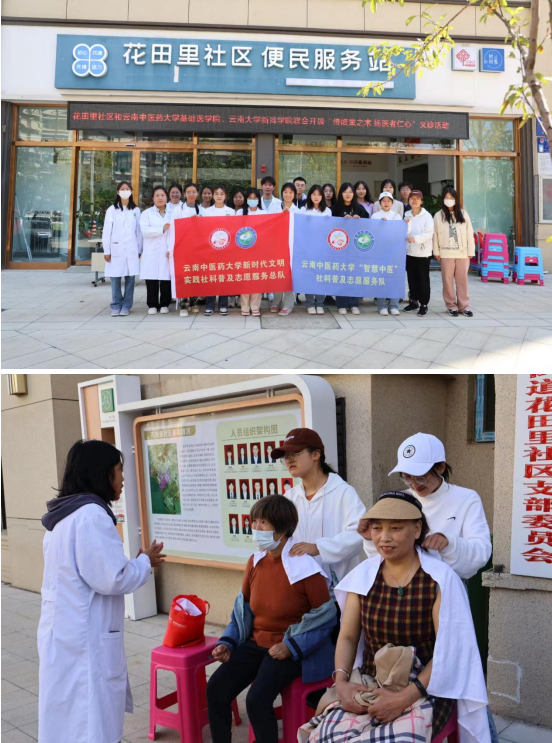 11月12日,“智慧中医”大学生志愿服务团与云南大学新闻学院青年志愿者协会前往呈贡区花田里社区联合开展“传岐黄之术·扬医者仁心”志愿服务活动。在开展义诊服务活动的同时,我院学生志愿者也将实用的中医诊疗技能教予云南大学新闻学院青年志愿者协会学生,云南大学2023级新闻专业本科生赵若蕃同学表示:“通过短暂的中医技能学习,我认识到了中医的作用不仅在于医治百病,更在于体现对患者的人文关怀——医者仁心”。本次活动充分体现了校际交流赋能的重要作用。