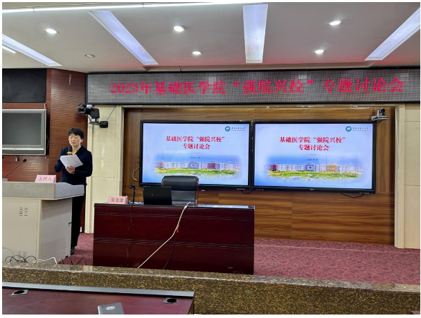 2023年8月25日下午,新学期开学第一天,基础医学院在呈贡校区翰墨楼2楼201会议室召开“强院兴校”专题讨论会,基础医学院全体领导班子成员、全体教职员工参加了会议,会议由基础医学院党委书记孙雪萍主持。
