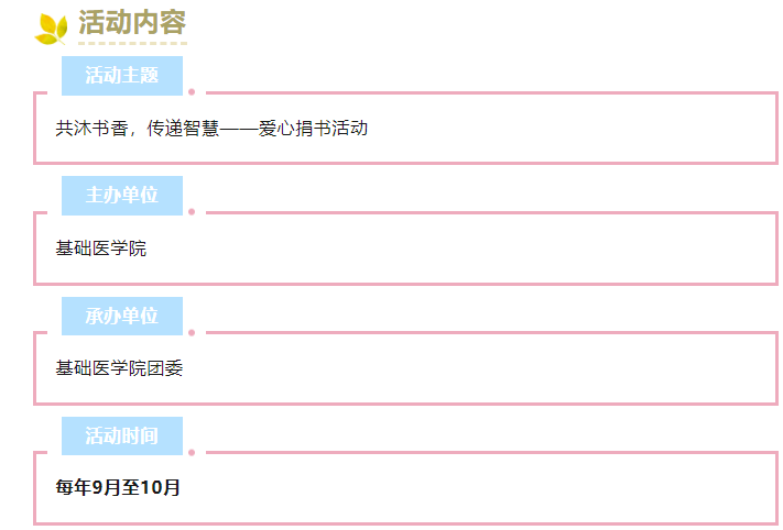 “书页因为翻动而飞翔,知识因为分享而流淌。”伸出你们的手,捐献一本书,分享你们的宝贵经验与精神财富。如果说书籍就像是一盆婀娜多姿的花,散发着难以抵挡的魅力和吸引力,那捐书便是让这份美和香气氤氲在生活的每一个角落。