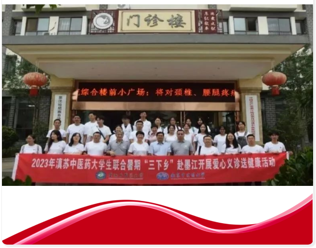 为深入学习宣传贯彻习近平新时代中国特色社会主义思想,全面贯彻落实党的二十大精神,学思践悟习近平总书记关于青年工作的重要思想,2023年7月10日至7月13日云南中医药大学基础医学院与南京中医药大学医学院·整合医学学院联合组建“2023年滇苏中医药大学生联合暑期‘三下乡’社会实践服务团”一行32人,共同前往云南普洱市墨江哈尼族自治县、镇沅彝族哈尼族拉祜族自治县、宁洱哈尼族彝族自治县等地开展大学生社会实践活动。两校师生通过深入民族地区了解民族团结进步新气象、送医送药服务少数民族老百姓、慰问捐赠少数民族小学生、参加民族团结誓词碑、爱国主义基地等活动,进一步铸牢中华民族共同体意识,厚植爱国主义情怀,助力“健康中国”建设。