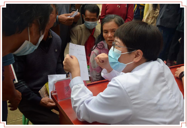 马文倩(云南中医药大学2021级中西医临床医学本科生):“行胜于言,实践是认识世界、改变世界的唯一途径。实践是检验我们学习成果,提高我们个人能力最好的老师。“医者艺也,医者仁也”,本次义诊活动让我深刻体会到,一名合格医生,不仅要有高超精湛的医术,还要有普救含灵之苦的仁心。”