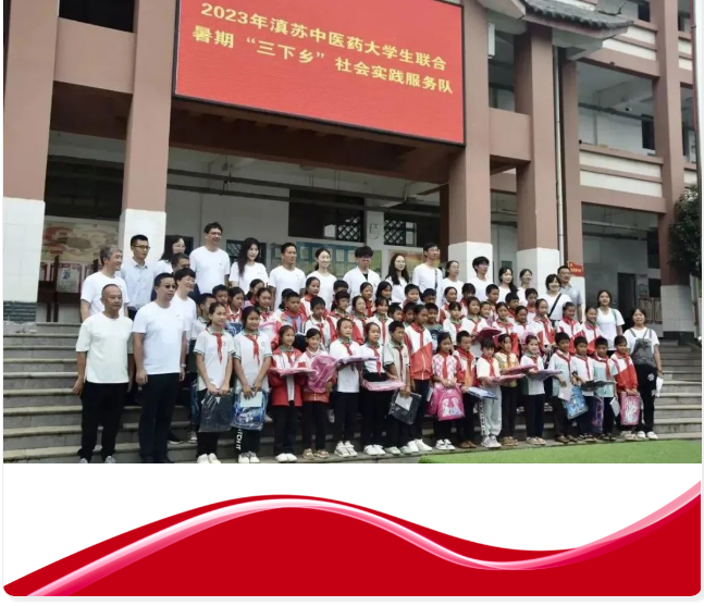 2023年7月10日上午,云南中医药大学基础医学院、南京中医药大学医学院·整合医学学院“三下乡”社会实践服务队在云南中医药大学杏林广场举行了2023年大学生暑期“三下乡”出征仪式。云南中医药大学党委副书记杨鹤清为各出征团队授旗,杨鹤清副书记表示暑期“三下乡”社会实践活动对大学生认识基层、服务基层具有重要意义,强调要始终把安全工作放在首位,并预祝本次大学生暑期“三下乡”社会实践活动取得圆满成功。