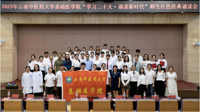 为深入学习宣传贯彻党的二十大精神,牢牢把握思想精髓和核心要义,基础医学院于5月25日晚在翰墨楼一楼报告厅举办“学习二十大•诵读新时代”师生红色经典诵读会。护理学院党委书记毕立雄、云南中医药大学团委副书记黄婷婷、马克思主义学院副院长苗丽、学生处副处长田园、中药学院团委书记翟星五位老师担任评委,基础医学院党政领导出席活动。