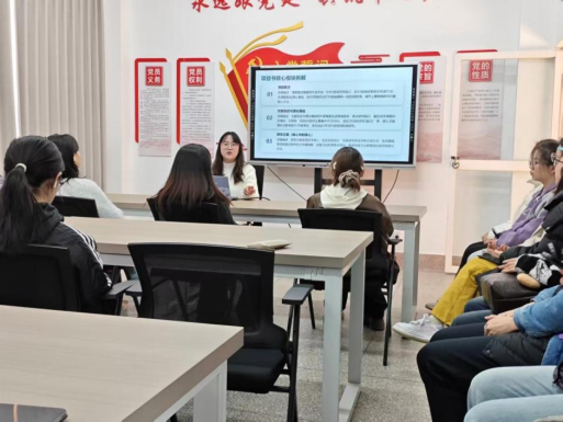 李梦雨以“以创新践行初心,以实战指引前行”为题,围绕赛事全流程,从项目构思、框架搭建,到项目书撰写、路演表达,层层深入、细致拆解。她结合自身多次参赛的实战经验,强调了逻辑构建与细节打磨的重要性,并分享了临场应变与团队协作的实用技巧。“竞赛不仅是专业能力的竞技场,更是团队协作与创新思维的试金石。”李梦雨在分享中鼓励同学们勇于尝试、敢于突破,将创新想法转化为扎实的竞赛成果。