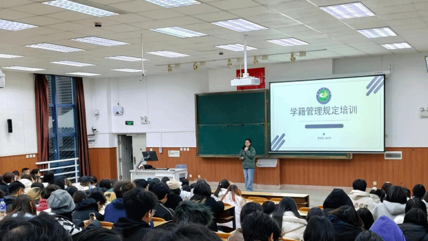 在学籍管理规定学习专题培训中,辅导员郭彩娜详细阐述了学校学籍管理规定中关于弹性学制与学业预警的相关条款,并特别提醒2025级新生务必重视专业学习,严防因学业不达标而面临退学风险。此外,她还向同学们介绍了学校的研究生推免政策,鼓励大家在刻苦钻研专业知识的同时,积极参与各类竞赛活动,全面提升个人综合素质。