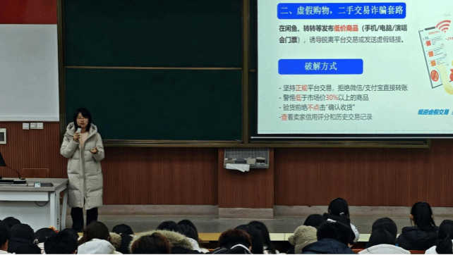 在防诈骗教育专题讲座中,辅导员张寒梦针对当前高校诈骗案件频发的现状,运用详实的数据与生动的案例,深入剖析了诈骗分子的作案手法及心理陷阱,系统讲解了兼职刷单、虚假购物、冒充亲友、网络贷款等九大常见诈骗形式,提醒同学们在日常生活中应提高警惕,不轻信陌生信息,不泄露个人隐私,遇到可疑情况要及时报警并寻求帮助。