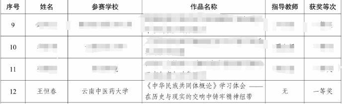 近日,在云南省教育厅与省民族宗教事务委员会联合主办的2025年云南省学校铸牢中华民族共同体意识教育征文活动中,我院推荐的2024级硕士研究生王恒春同学的参赛作品《<中华民族共同体概论>学习体会 —— 在历史与现实的交响中铸牢精神纽带》荣获学生组一等奖。