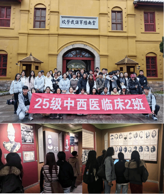 2025年11月中旬,2025级中西医临床2班、2023级中西医临床6班的同学前往翠湖畔的陆军讲武堂旧址,对云南陆军讲武堂历史博物馆进行了参观。