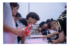 各位老师和同学们在夜跑前可在发放点选择领取荧光棒或荧光手环。